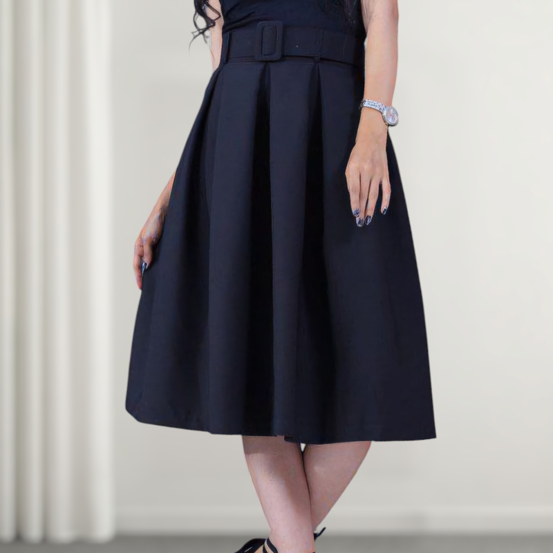 یکی از انتخابهای شیک و کاربردی برای خانمهایی است که به استایل مرتب و زنانه اهمیت میدهند. طراحی پیلههای جلو باعث میشود دامن روی اندام بسیار خوشفرم بنشیند و در عین سادگی، جلوهای خاص و مجلسی به ظاهر شما بدهد. این مدل دامن برای استفاده روزمره شیک تا موقعیتهای نیمهرسمی کاملاً مناسب است.