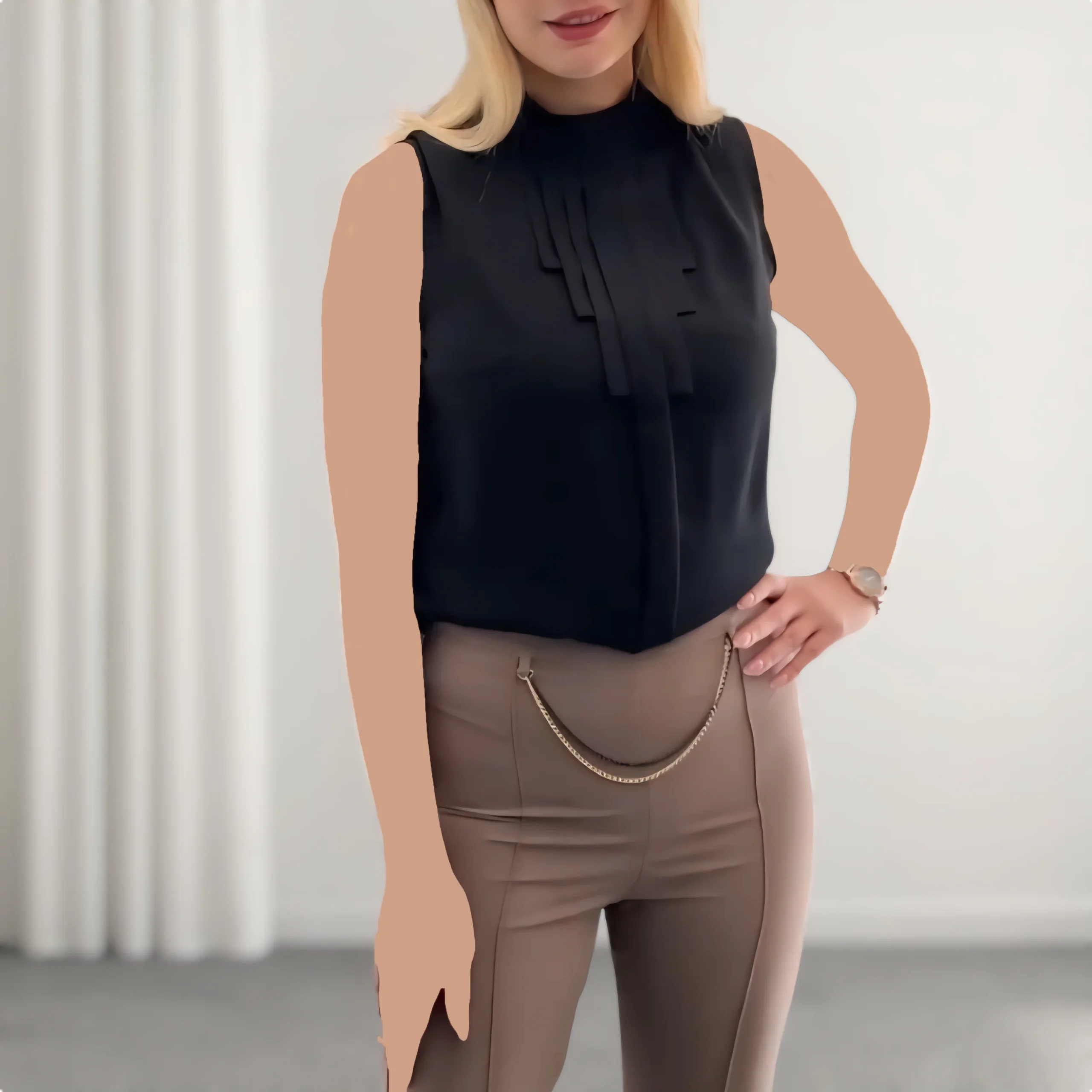 این مدل با قد ۷۵ سانتیمتر طراحی شده تا نه خیلی کوتاه باشه، نه خیلی بلند. همین باعث میشه بتونی راحت هم داخل شلوار و دامن بذاریش، هم روی لباس قرارش بدی. فرم بدون آستین و یقهی بستهی کار، اون رو به یه انتخاب عالی برای زیر کت یا مانتوهای مجلسی هم تبدیل کرده.