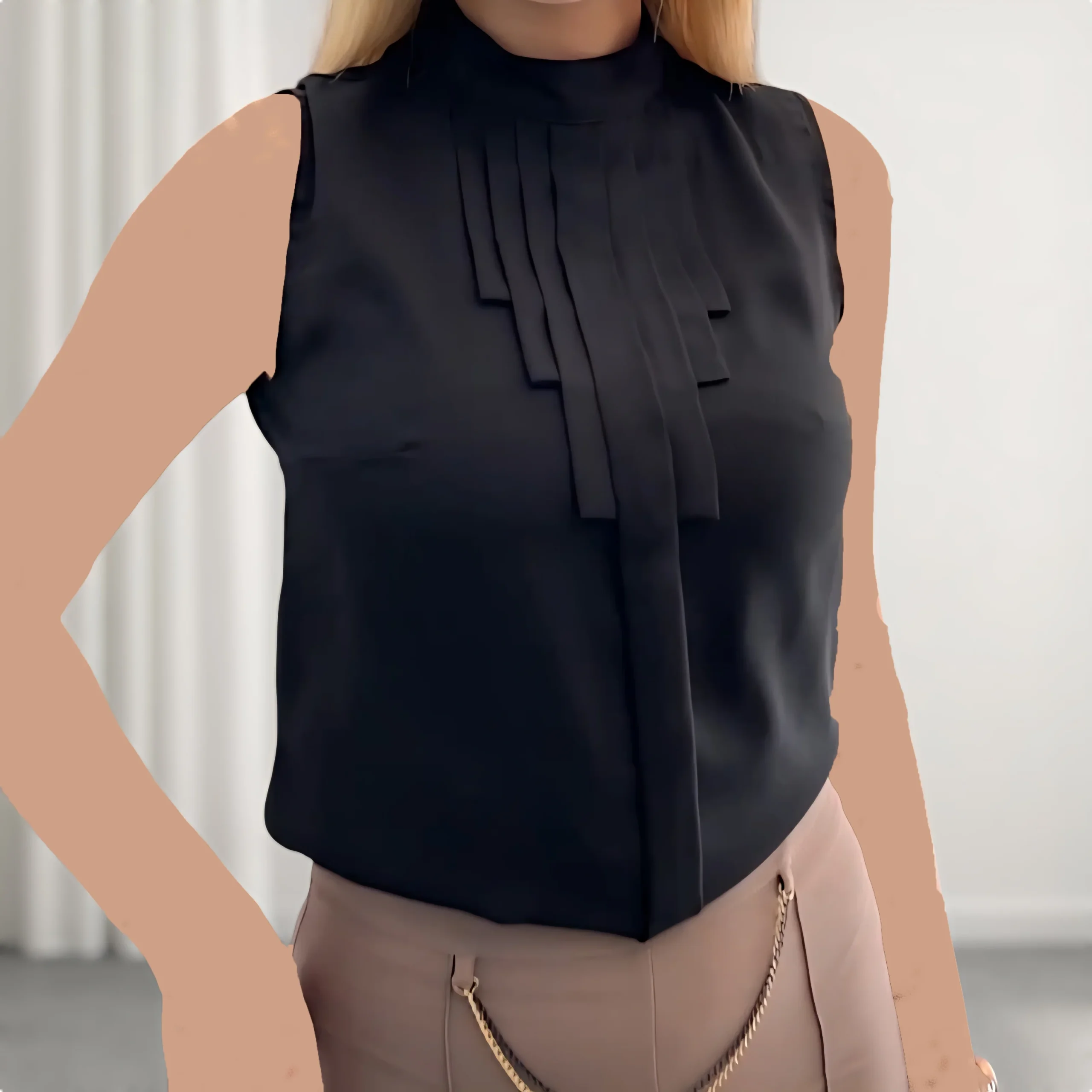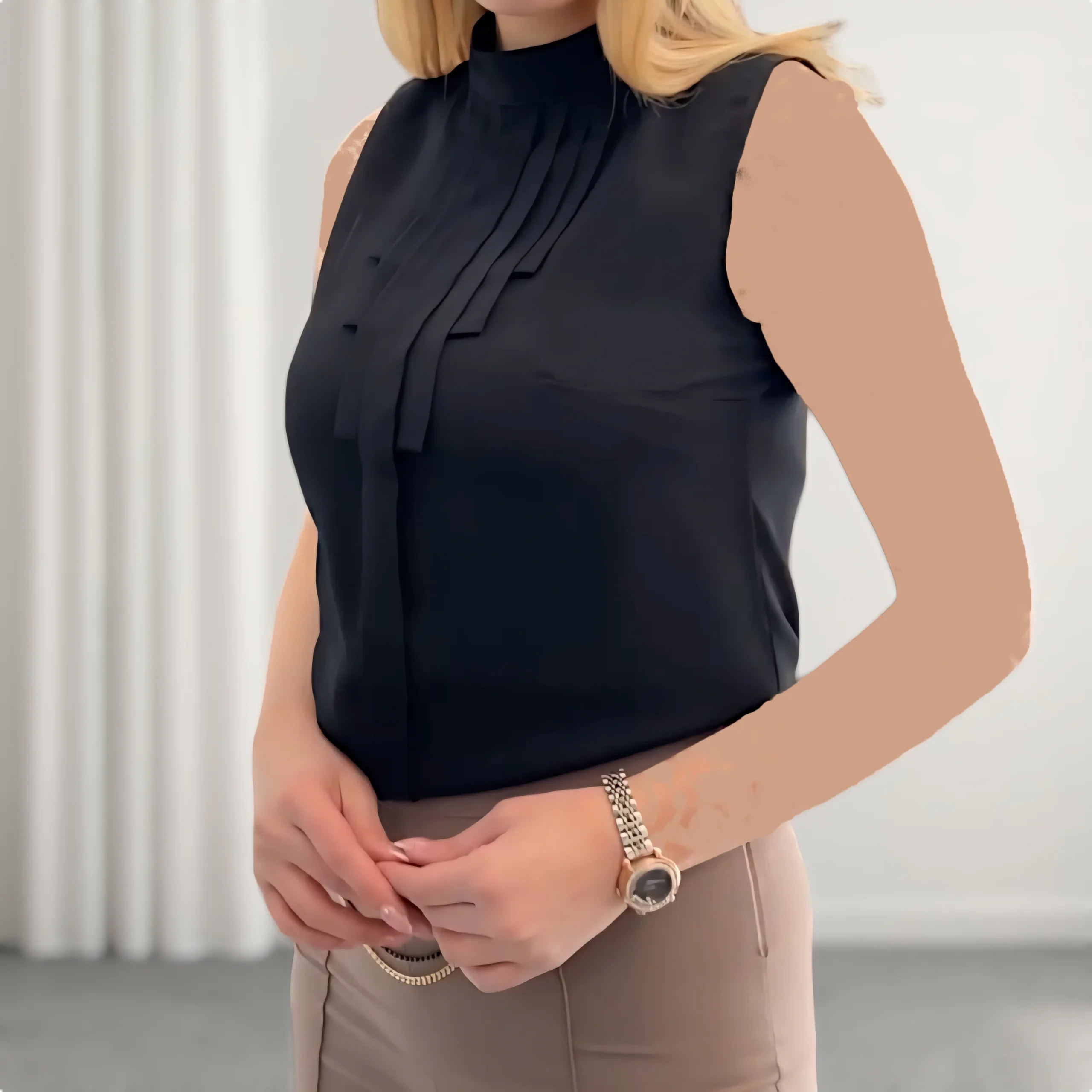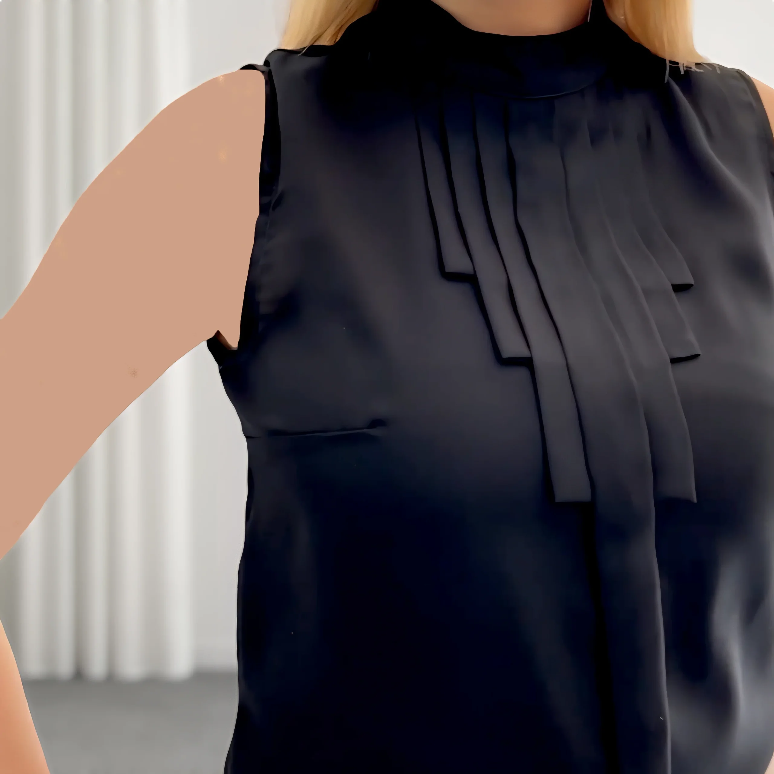اگه دنبال یه تاپ مجلسی شیک و متفاوتی، این مدل دقیقاً همون چیزیه که دنبالش بودی! طراحی خاص یقه و چینهای عمودی جلو، باعث میشه این تاپ ساده نباشه و بهصورت کاملاً ظریف، یه حس خاص و شیک به استایلت بده. رنگ کاملاً مشکی اون از نوع جت بلک هست، یعنی مشکی عمیق و براق که با هر رنگی بهزیبایی ست میشه.